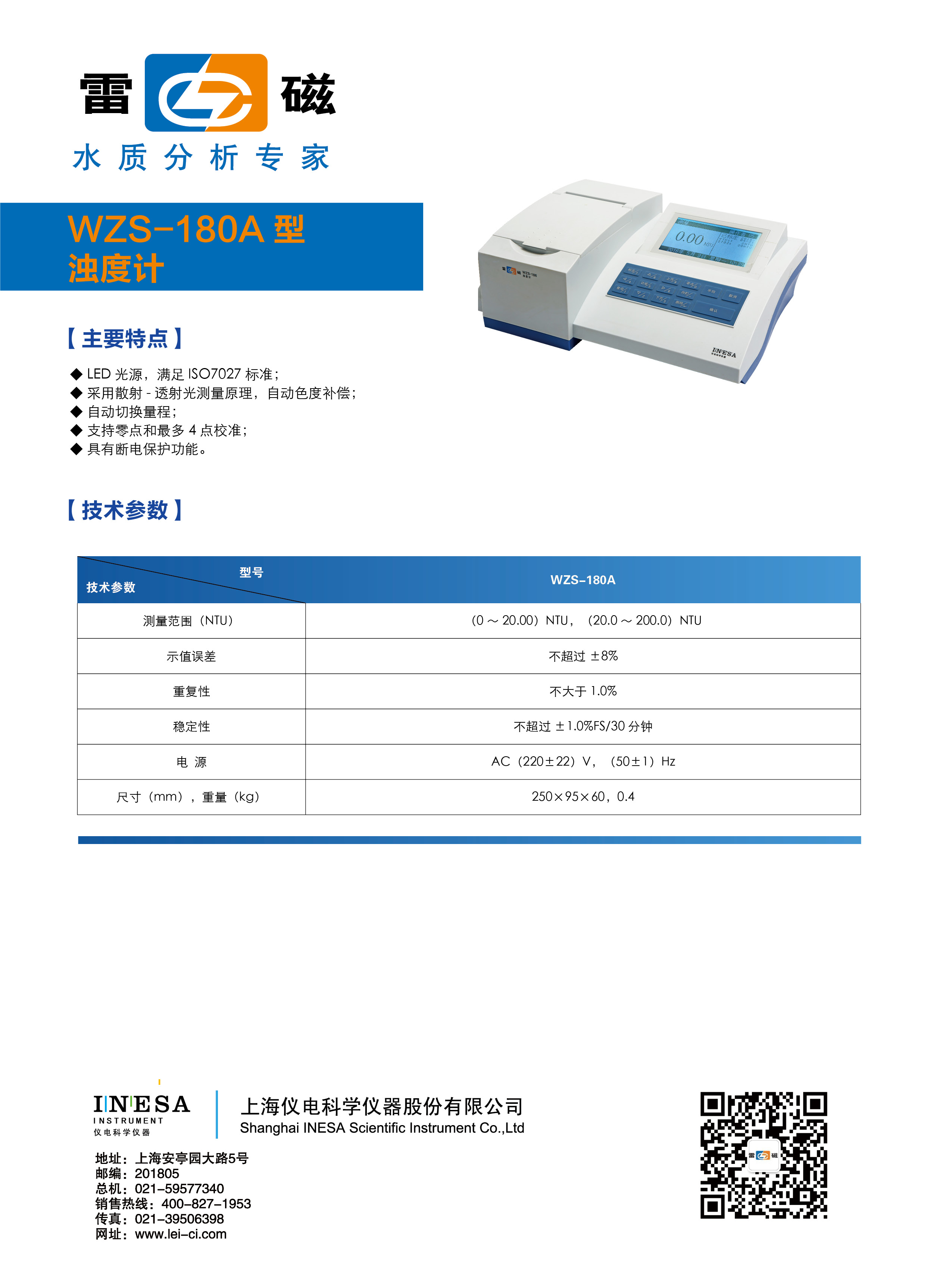 留言板——上海雷磁濁度計WZS-180A型